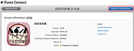 就等你上傳App Binary了.